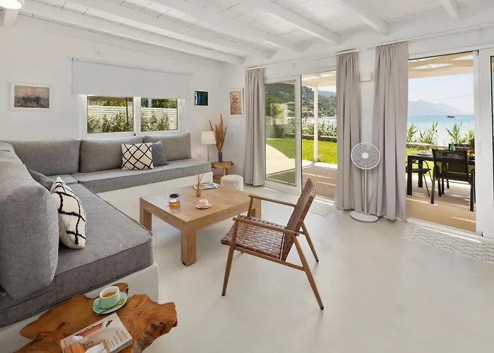 Casa Sabbia 10M From The Beach nabízí plážové ubytování v 15 minutách autem z letiště Mezinarodni letiste Korfu. Tato plážová vila obsahuje pokoje s balkónem, pohovkou a pracovním stolem.